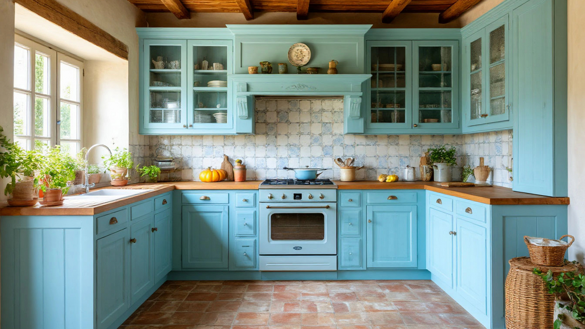 Дизайн кухни подчёркивает утонченность и романтичность прованса. Мягкие линии, аккуратные декоративные элементы, пастельные оттенки и сочетание с натуральными текстурами создают уютное пространство, в котором приятно находиться. Голубой цвет фасадов освежает интерьер и создаёт ощущение чистоты, лёгкости и воздуха.