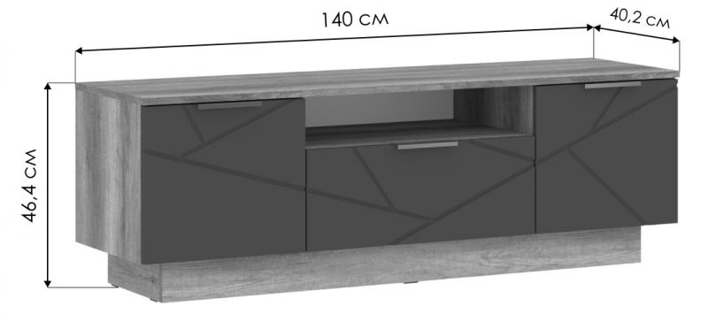 ТВ-тумбы Диамо ТБ 04 софт графит / дуб каньон (140x40,2x46,4).