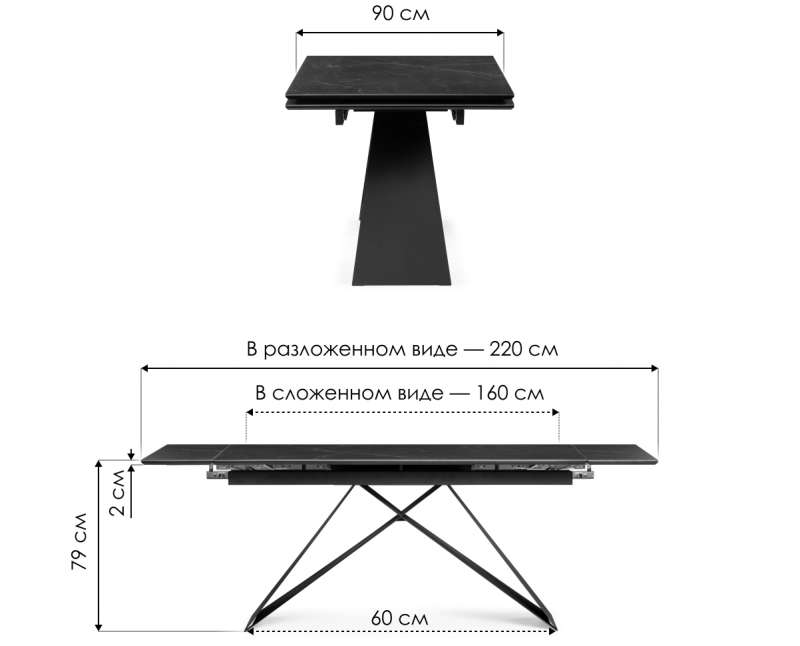 Керамический стол Ноттингем 160(220)х90х79 черный мрамор / черный (90x79).