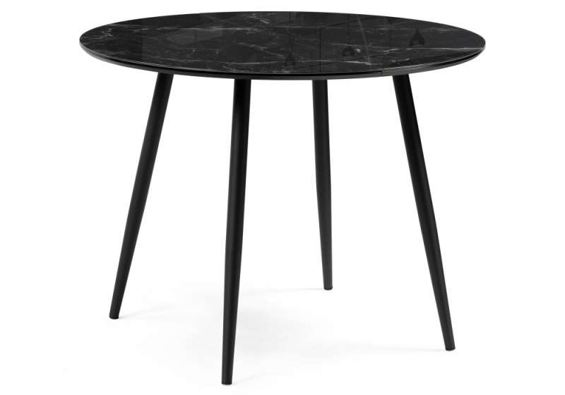 Стол стеклянный Абилин 100(140)х100х76 мрамор черный / черный матовый (100x76)
